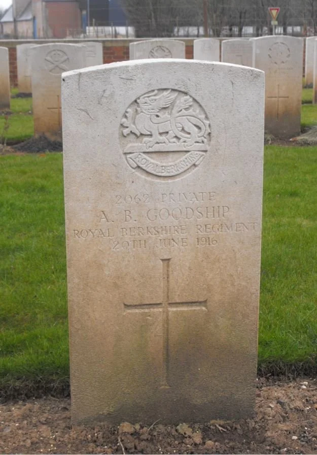 The gravestone of Private Albert Bertie Goodship